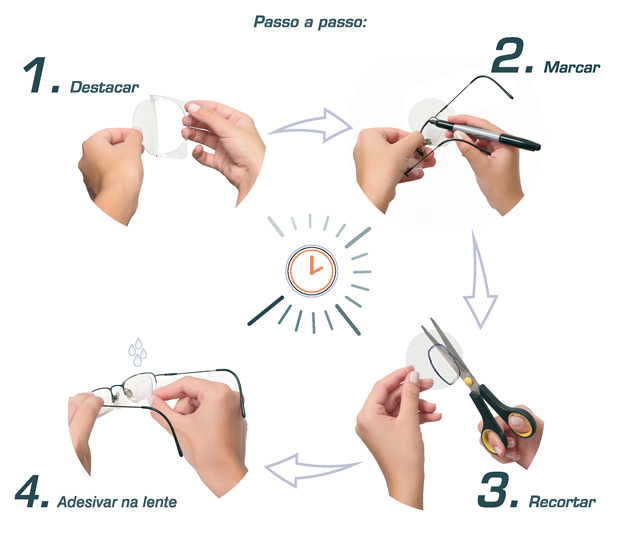 Usado para auxílio na leitura, pode ser aplicado apenas na zona de perto do óculos.